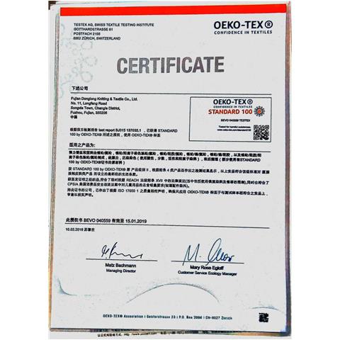 瑞士OEKO-TEX STANDARD 100生態(tài)紡織品認證證書