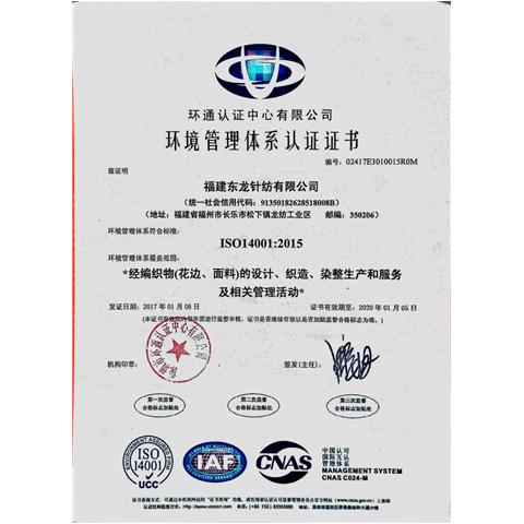 ISO14001環(huán)境管理體系認證證書