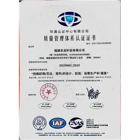 ISO9001質量管理體系認證證書